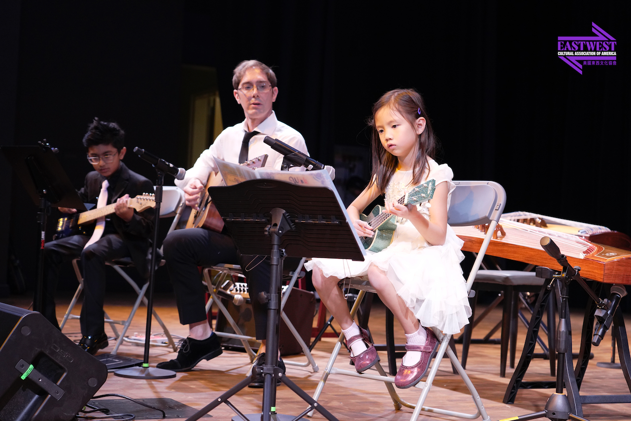 美国东西文化协会联合创始人荷蓓蓓女士和Jon Monter先生,分别带领他们悉心指导的学生们,用古筝、吉他、尤克里里和歌声,跨越东西文化的边界,让东西方文化在同一个舞台上精彩呈现。